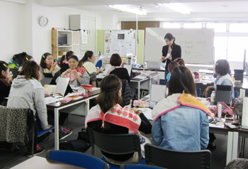 テーマは、「スポーツインストラクターとしての好印象メイクアップ術」として、清潔感と信頼感、熱意を増すようなお化粧方法を、講義やデモ、実習を通じ、お伝えしました。