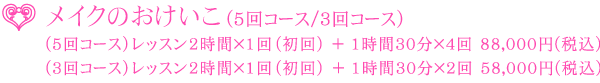 ワンポイントメイクレッスン、メイク教室、プライベートメイクレッスン各種