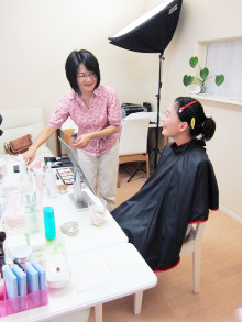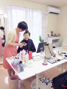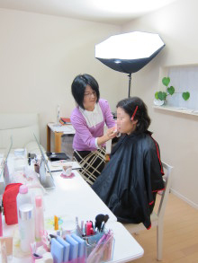 このように、2人のモデルさんにお化粧をしていただくんです。