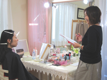 人の肌に触れ、お化粧を施すのに慣れるのが目的の<ベーシック>と、お客様のオーダーに合わせてメイクイメージをご提案できるようになる<アドバンス>、の2種です。