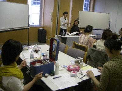 メイクの実践にはいると どの参加者も視線は 鏡!かがみ!asamiさん!鏡!